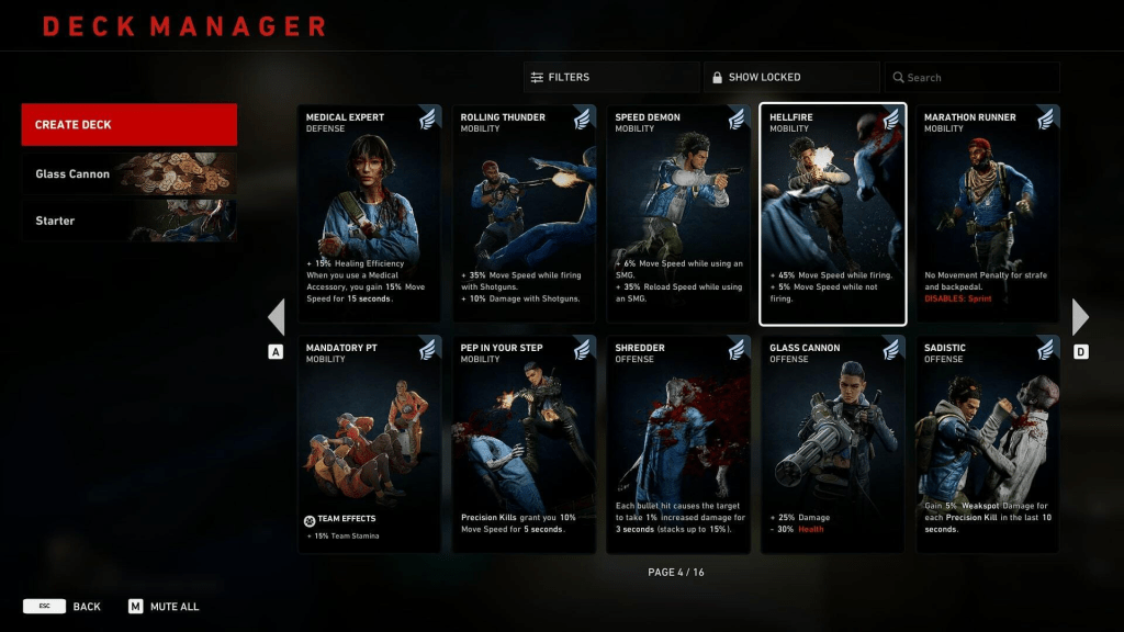 Back 4 Blood’s most meaningful mechanic is its card system, which allows players to build decks of cards that provide stat boosts and passive perks and abilities. Most of the cards offer straight bonuses, but some of the more advanced ones confer negative traits as a way to indicate their use for more specialized builds. Melee-focused cards, for instance, might give huge bonuses to melee attacks while reducing ammo capacity. Multiple decks can be saved with 25 cards each; you’ll start with the first few cards in your deck at the beginning of a run, picking up more at the start of each level.