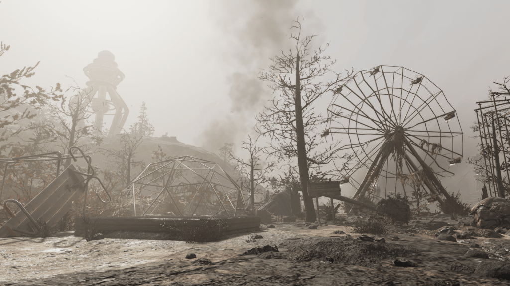 Where Fallout 76 is at its most compelling is actually in its world building and exploration. The region of Appalachia is huge, and Bethesda managed to cram a few different biomes within its confines. There are lush forests, urban ruins, and bubbling, toxic swamps. One of my favorite regions is where two competing pre-war mining companies engaged in a literal mine-off to settle a dispute about workforce automation. Together the two corporations fatally churned the land into mud and soot, giving it an appearance more akin to Passchendaele circa 1918 than the beautiful West Virginia countryside.