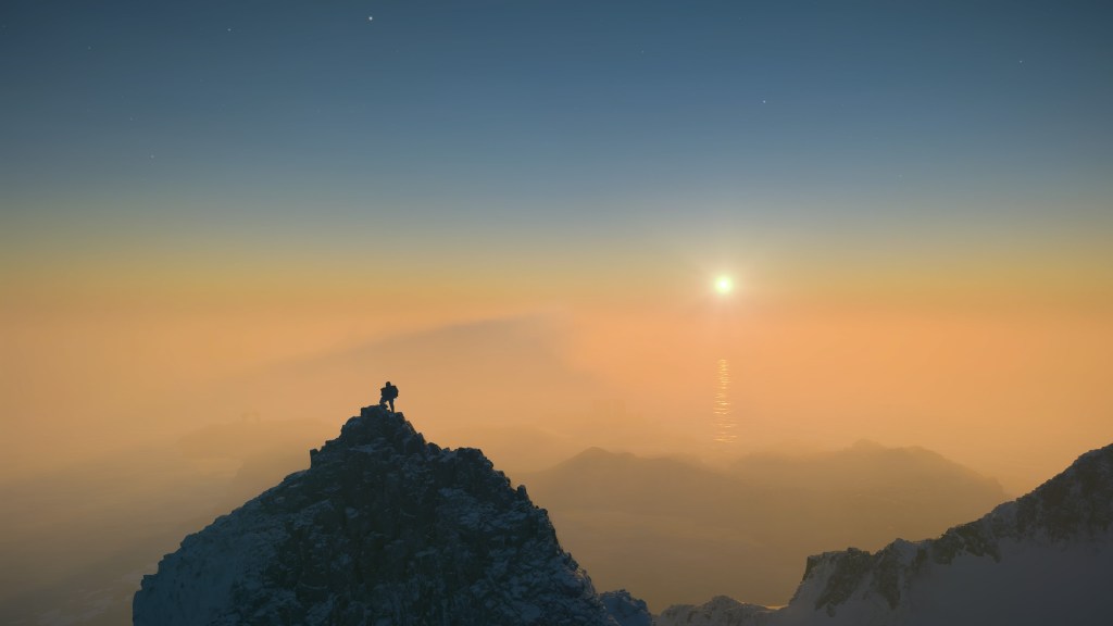 It’s that classic feeling of a video game world that’s alive, made all the more real by other details like Sam getting sunburns and frostbite after enduring a harsh climate, or collapsing to his knees for a moment after an arduous trek through snow or a lengthy battle that depleted his stamina. And it all sounds incredible too—wind blowing through the peaks, pattering rain, the mechanical whirring of an exoskeleton, all the little plings and beeps and melodies and stingers that play when passing over signs left by other players or receiving a codec call from the team aboard the Magellan. It’s all just brimming with little bits of life that make every moment of the game feel tactile and lively.