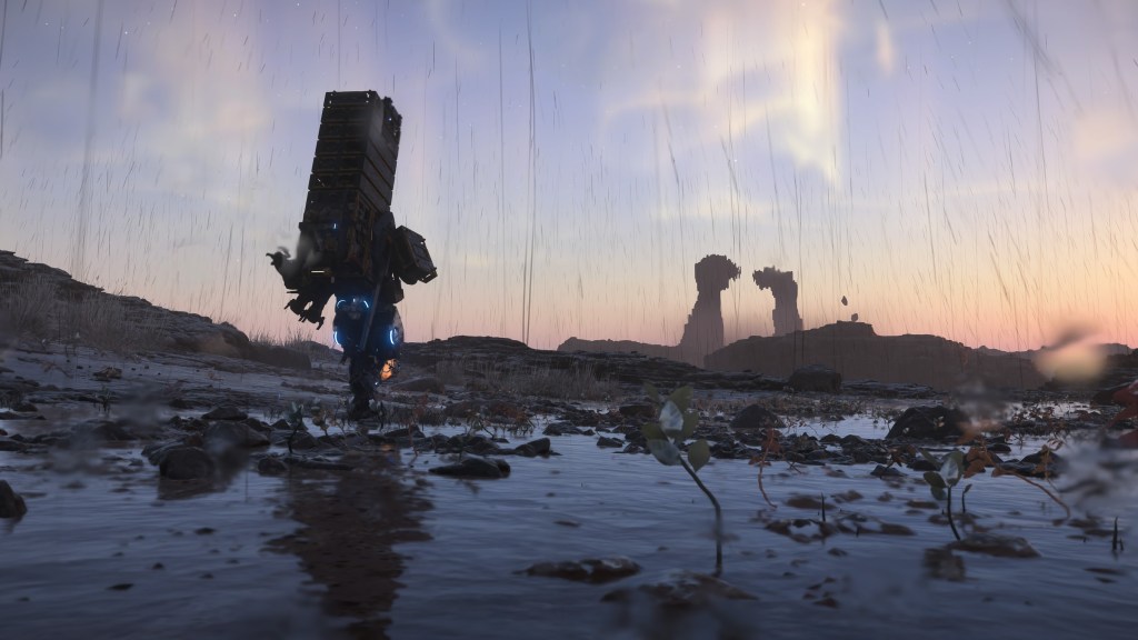 The sheer number of tools and environmental warnings in the game about temperature and high water levels suggests a harsher world to traverse than what’s actually there. And comically, the ease of travel actually undermines Death Stranding’s favorite trick of kicking in a song and pulling the camera back as you near your next story destination—there were a handful of times where I was zooming along so quickly that I reached my objective, and thus ended the song, before the first verse had even begun, totally defeating the moment.